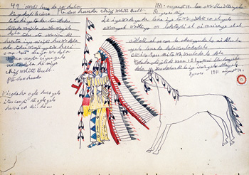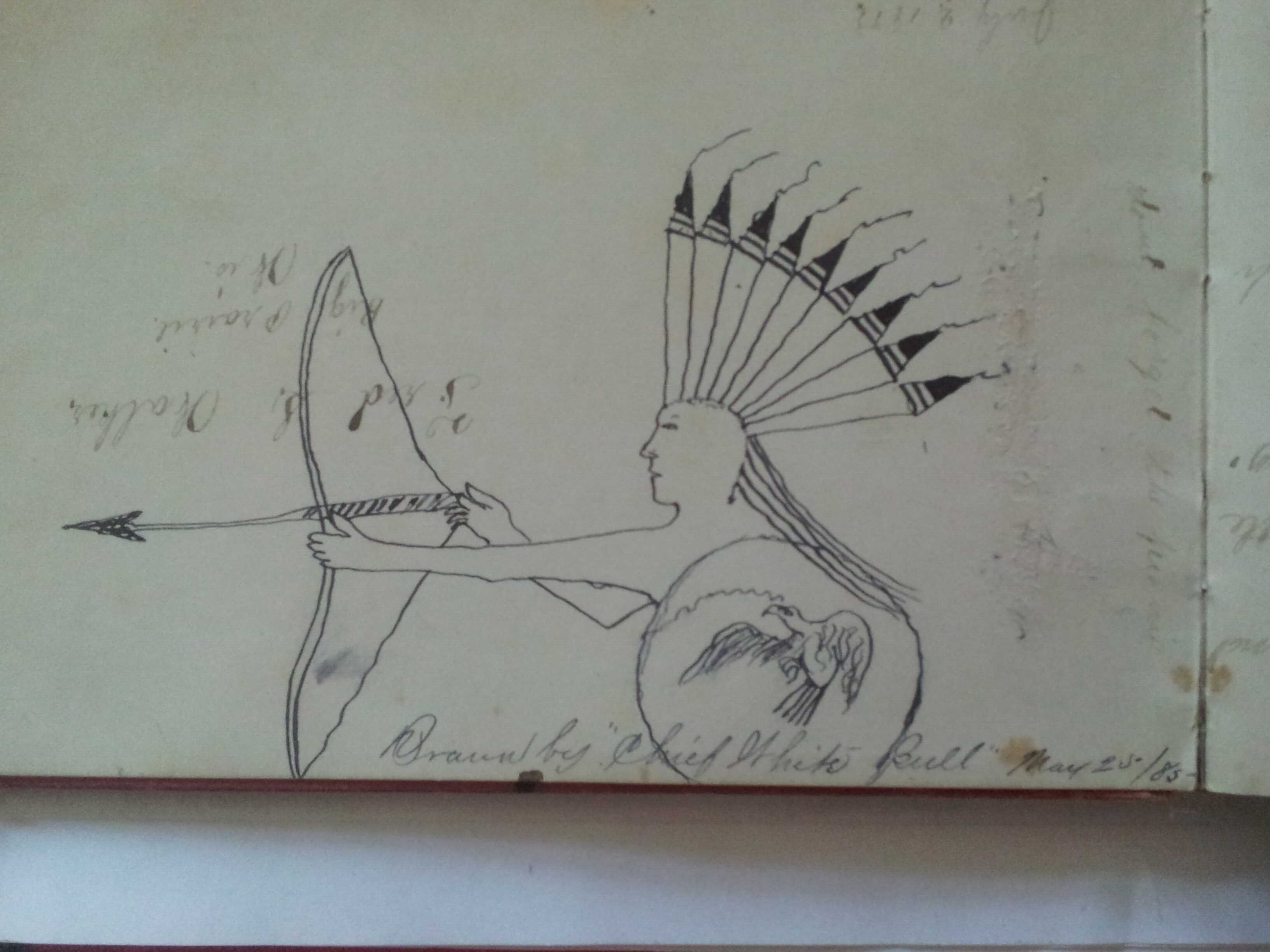 Captioned in a feminine hand: “Drawn by Chief White Bull May 25/85.”