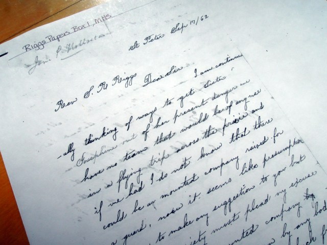 Recently Lois Glewwe posted a biographical sketch of Sophia Josephine Marsh Huggins along with a PDF transcription of her 1862 captivity story on Dakota Soul Sisters. In Fargo last week, Lois and I talked about research leads on Huggins’s story. But I had forgotten about a file I’d created on her containing gleanings from the Riggs Papers at MHS.