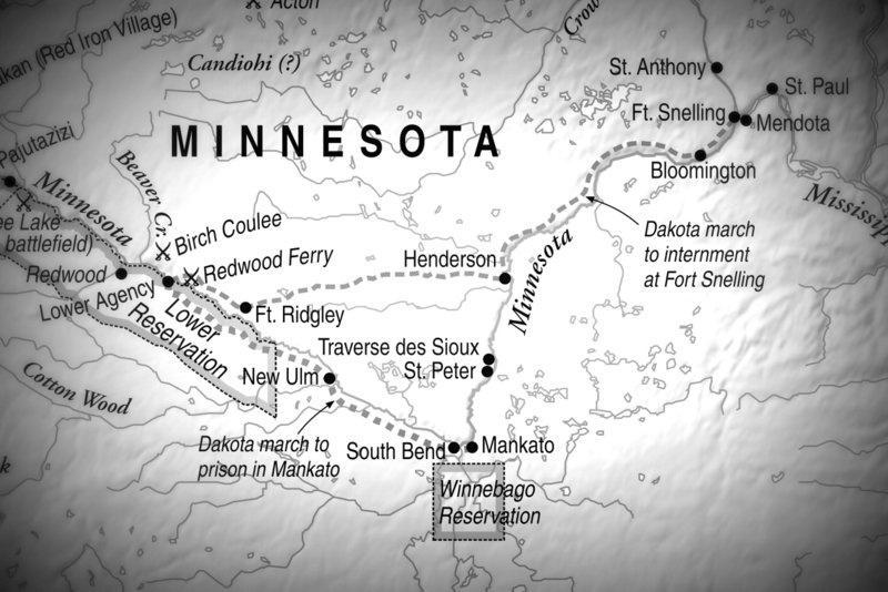 [1] For chronologies of the women’s march, see Mary H. Bakeman and Alan R. Woolworth, “The Family Caravan,” in Trails of Tears: Minnesota’s Dakota Indian Exile Begins (Prairie Echoes, 2008), and p. 35 in Becky Weinberg’s May 2007 Cura grant report, The Dakota Women’s March, commissioned by Dakota historians.